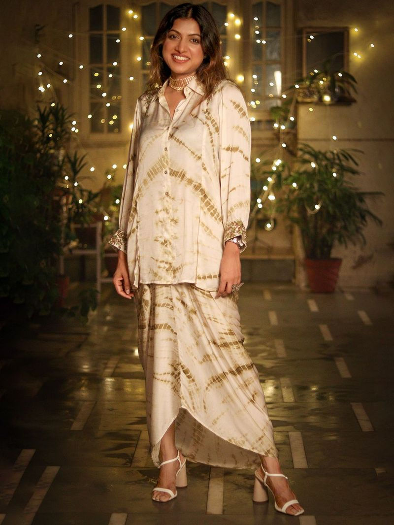 the loom- White Tie and Dye Modal Satin Co-ord Set